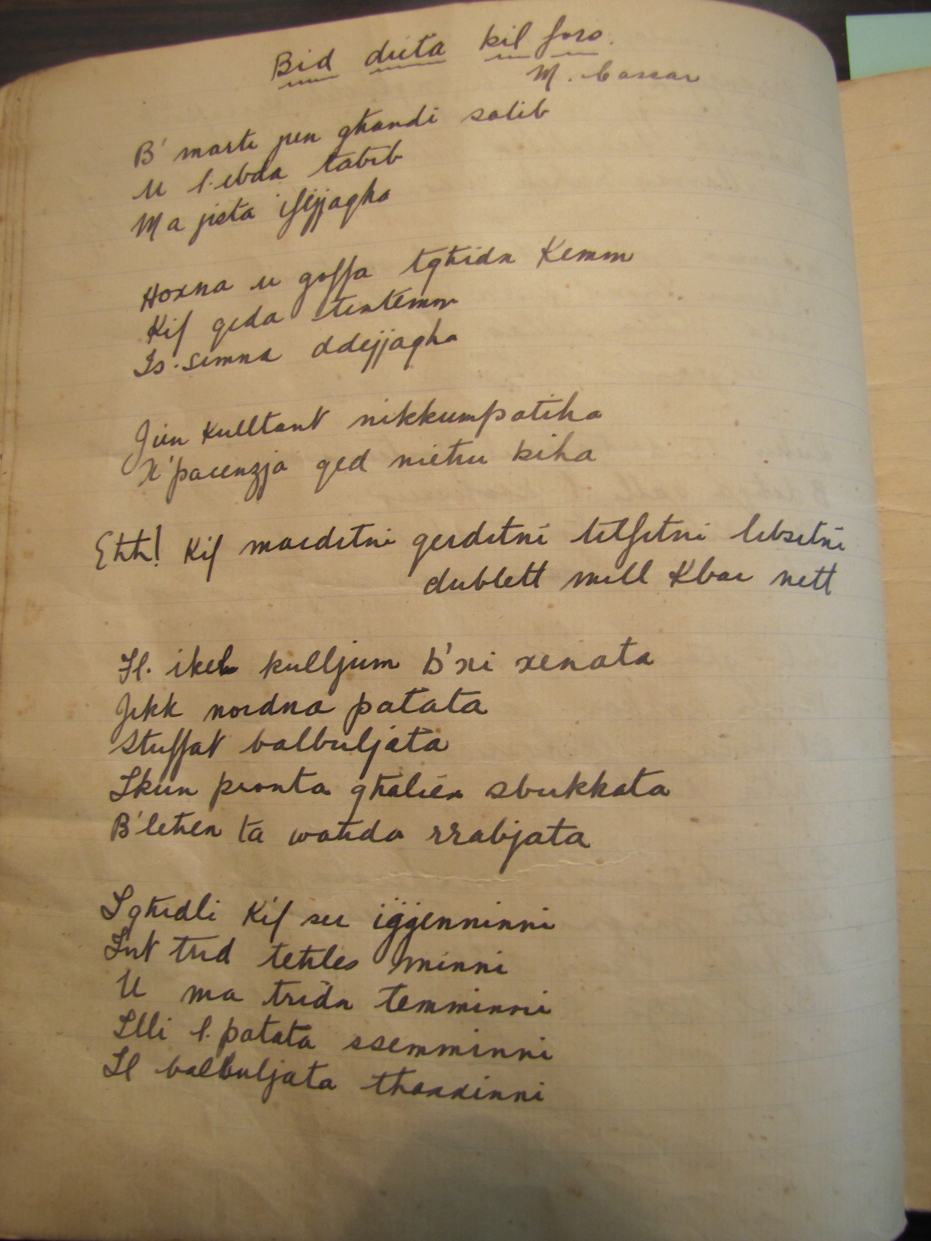 Revision as of 08:26, 31 October 2016 by Joejulian (talk | contribs) (Ġabra ta' Makkjetti by Charles Clews 56 Category:Charles Clews lyrics)